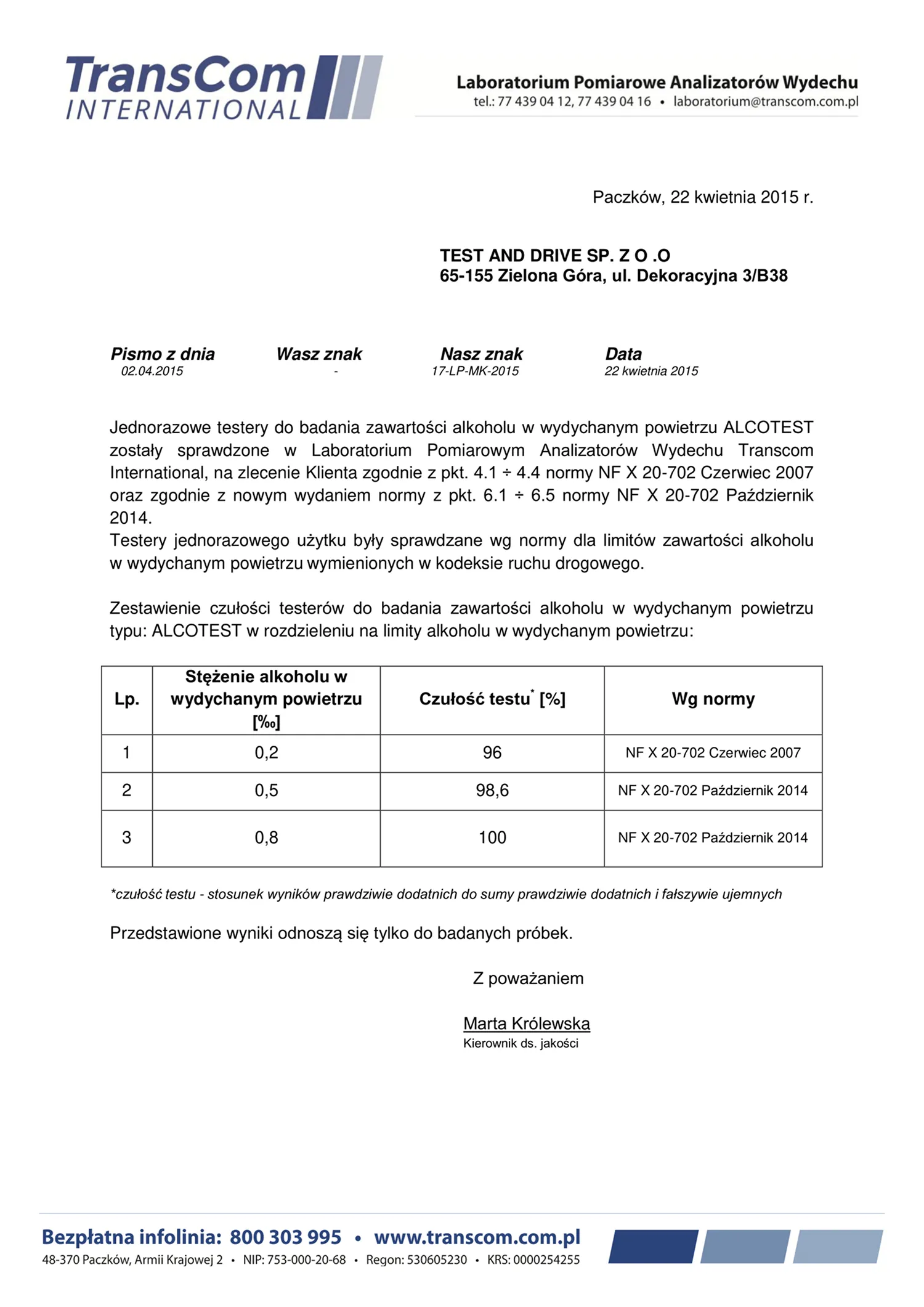 Optymalizujemy procedury weryfikacyjne skuteczności naszych alkomatów.