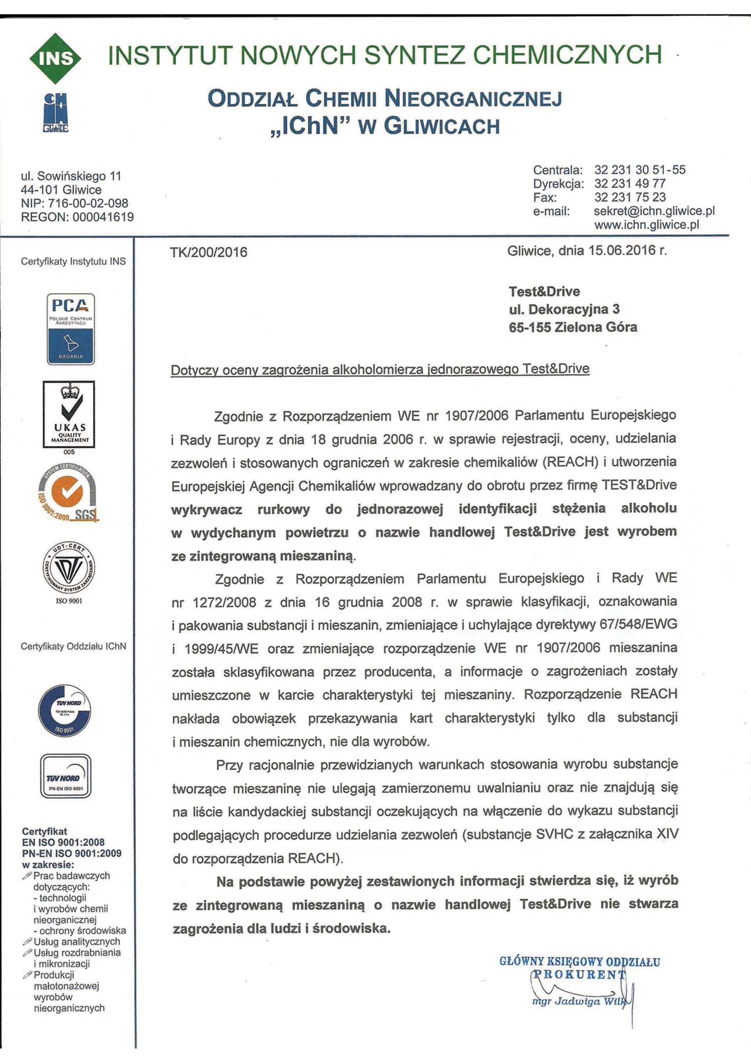Alkotesty sa bezpieczne dla zdrowia. Nie zawierają dichromianu potasu