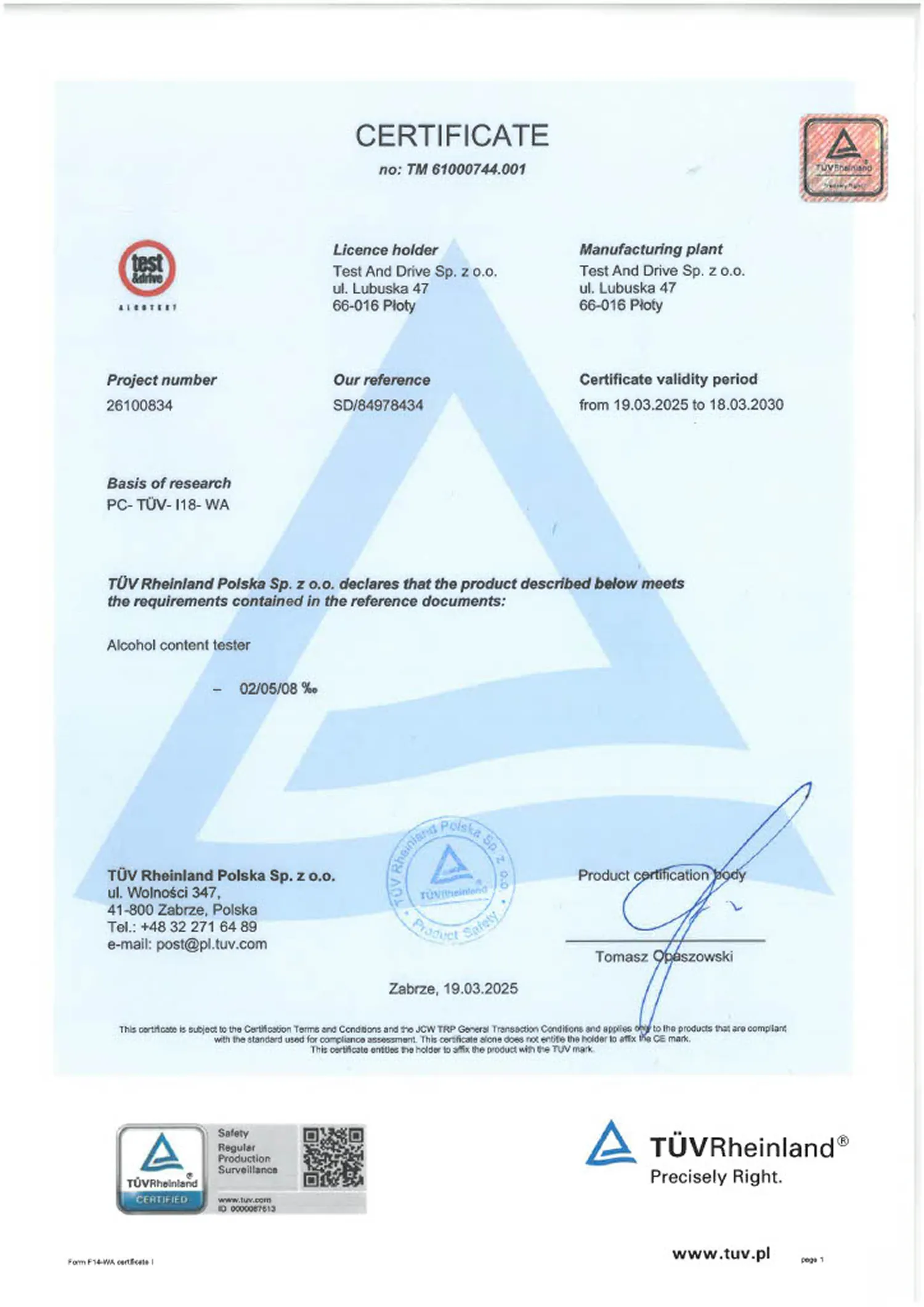 Jeden z najdokładniejszych testów/ alkomatów na rynku