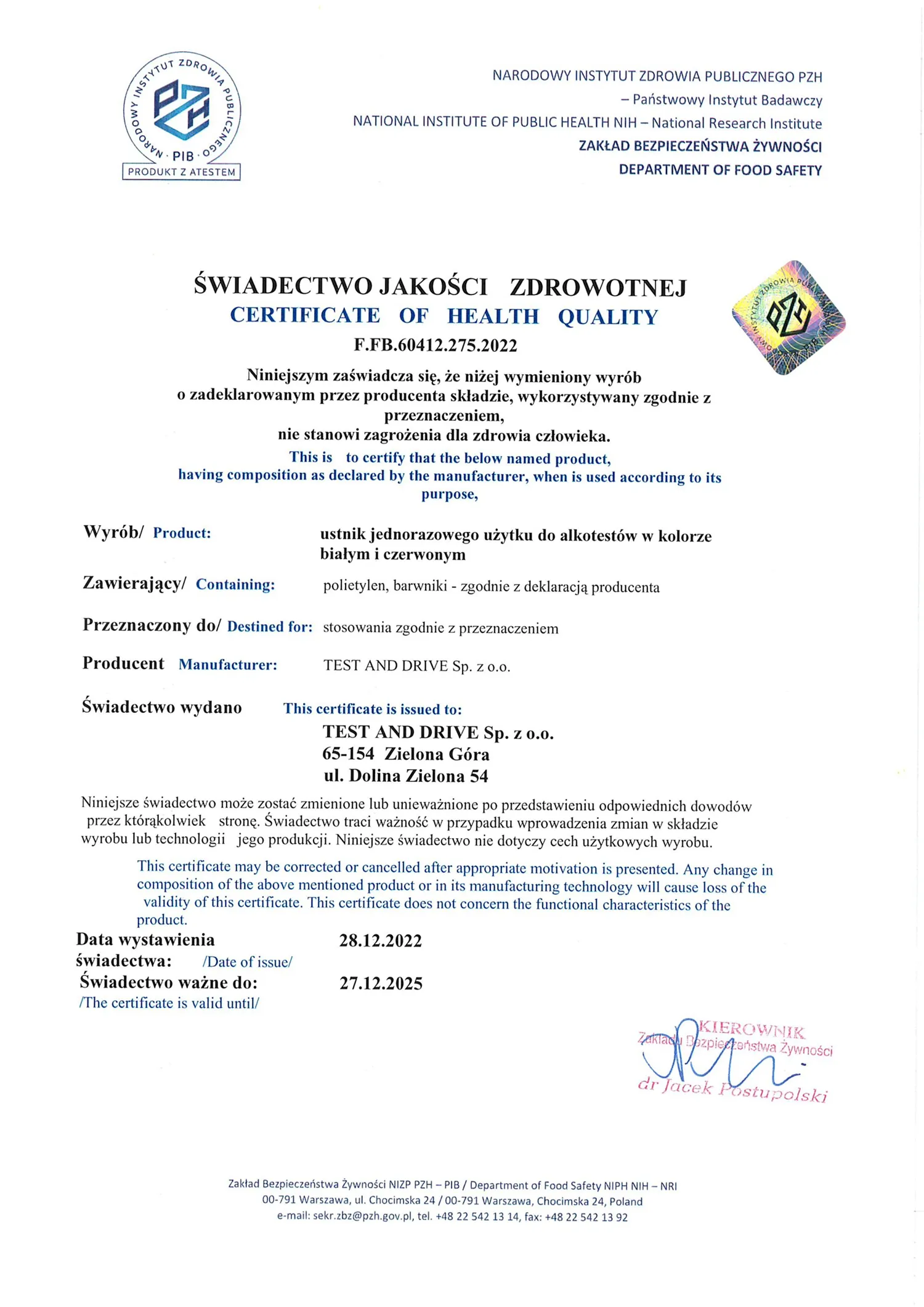 Nasze alkotesty są trwałe, niezawodne i precyzyjnie weryfikują zawartość alkoholu w wydychanym powietrzu.